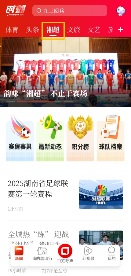 时刻新闻客户端“湘超”专属频道上线。